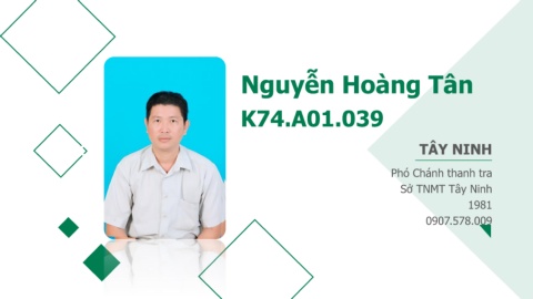 Nguyễn Hoàng Tân K74.A01.039 TÂY NINH Phó Chánh thanh tra Sở TNMT Tây Ninh 1981 0907.578.009